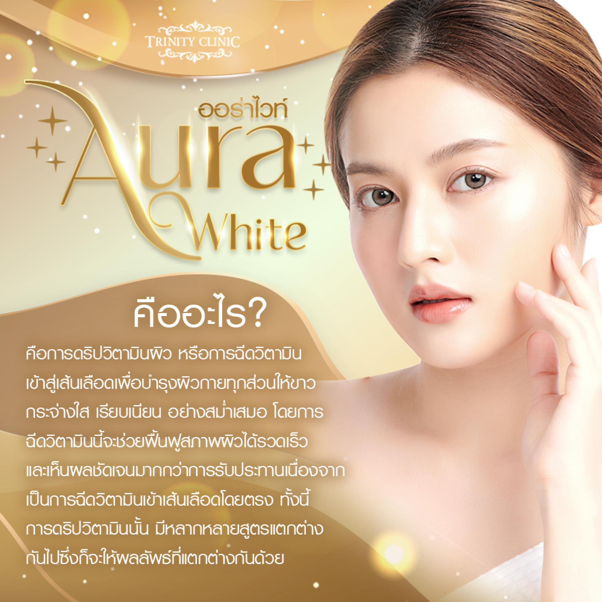 คือการดริปวิตามินผิว หรือการฉีดวิตามินเข้าสู่เส้นเลือดเพื่อบำรุงผิวกายทุกส่วนให้ขาวกระจ่างใส เรียบเนียน อย่างสม่ำเสมอ โดยการฉีดวิตามินนี้จะช่วยฟื้นฟูสภาพผิวได้รวดเร็วและเห็นผลชัดเจนมากกว่าการรับประทานเนื่องจากเป็นการฉีดวิตามินเข้าเส้นเลือดโดยตรง ทั้งนี้การดริปวิตามินนั้น มีหลากหลายสูตรแตกต่างกันไปซึ่งก็จะให้ผลลัพธ์ที่แตกต่างกันด้วย